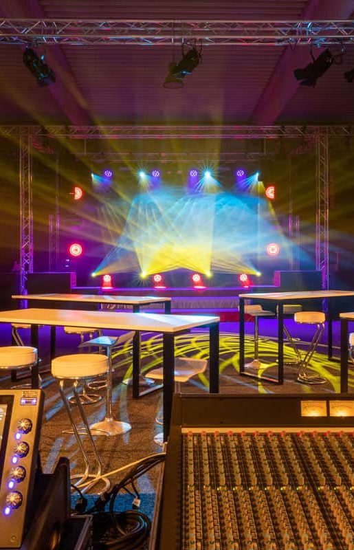 Riesiges Inventar an Lampen, Lautsprechern, Led-Wand und Effekten